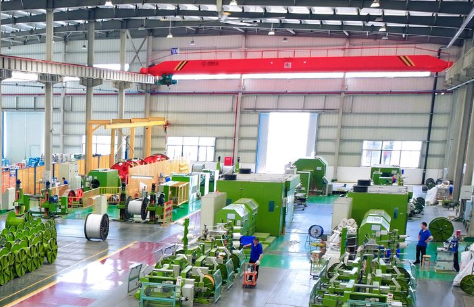 走進電纜生產車間,那是一片工業活力與秩序交織的景象。縱橫交錯的輸送軌道如同車間的動脈,而在高高的天花板下,天車攜帶著鋼絲繩電動葫蘆,宛如一位掌控全局的空中巨人,時刻準備著執行吊運使命。